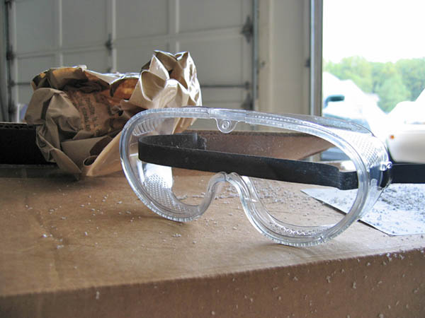 step 2. get a jig-saw. read the caution label. notice it says to always use protection (for your eyes).