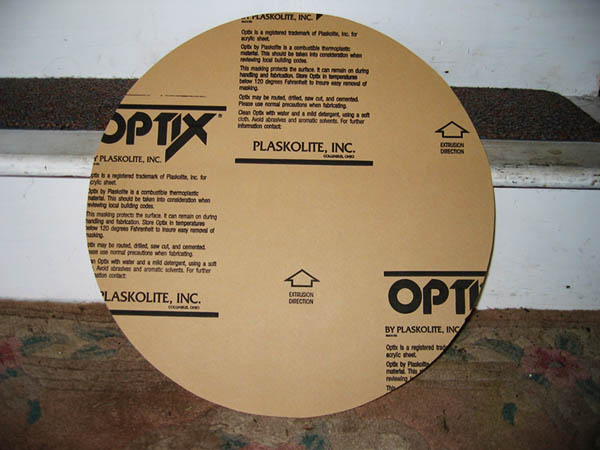step 7. peel off protective covering from plexiglass and lay on top of wheel. put something on top of the plexiglass to make your wheel table look useful.