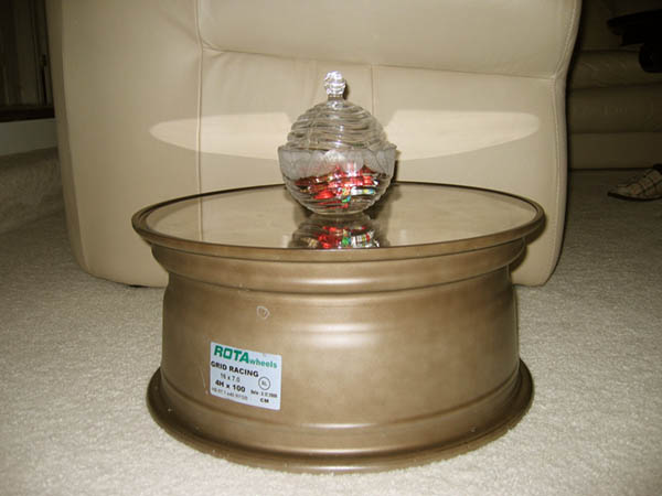 I am 100% serious I almost had 16" HFP wheel/Toyo Proxes 4 tires coffee table, but I built an oak and tile coffee table that is extremly nice.