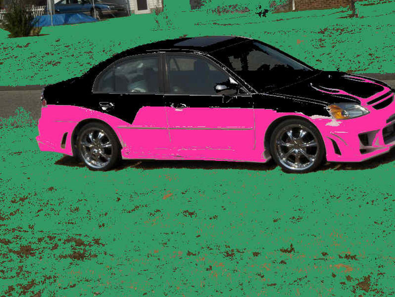 Yea, I don't like the kit and the pink does not flow with the silver at all. Even the pink part looks a bit dull compared to the oem silver. If you were gonna paint it, you should've at least painted the entire thing one color...either that or find a two tone color scheme that matches. The pink and silver just don't complement each other that well...and those chrome wheels on a civic...*sigh*