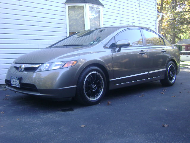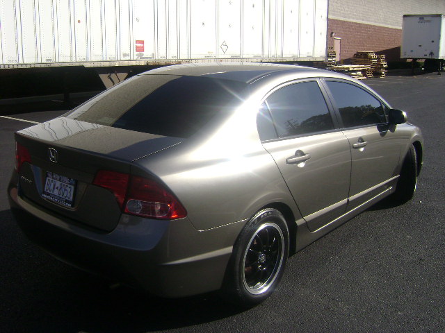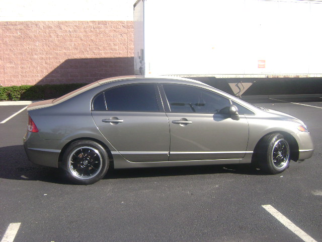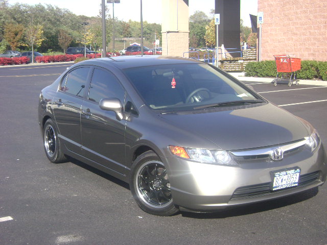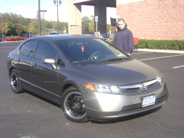 hey guys.. whats up.. I am new to these forums and just wanted to show off my new 2006 honda civic lx in metallic galaxy grey i got 2 months ago. I am in love with this car because it is my first car. I try to keep it as clean as possible every week. So far i have put 20% tints all around, black enkei j10 rims, a neon blue dome light, and euro designz blue headlights. For these pictures i had to use my friends camera because i dont have one, so the quality isnt so great.
