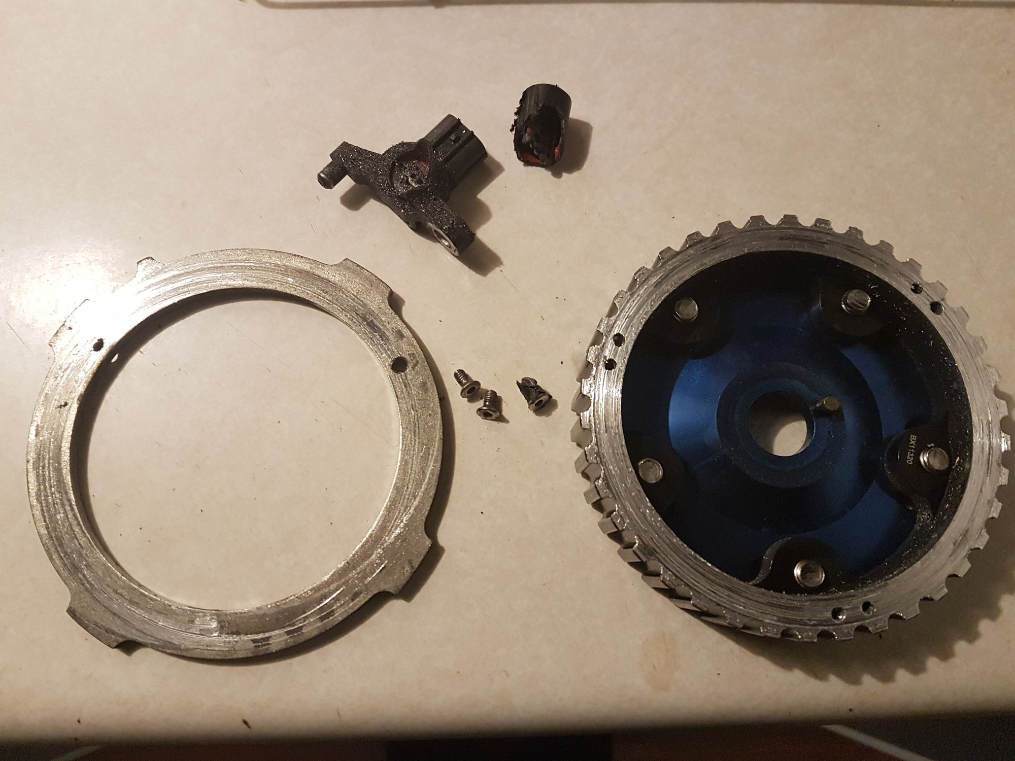 Tdc sensor smashed in half, aluminum shavings everywhere, fml.