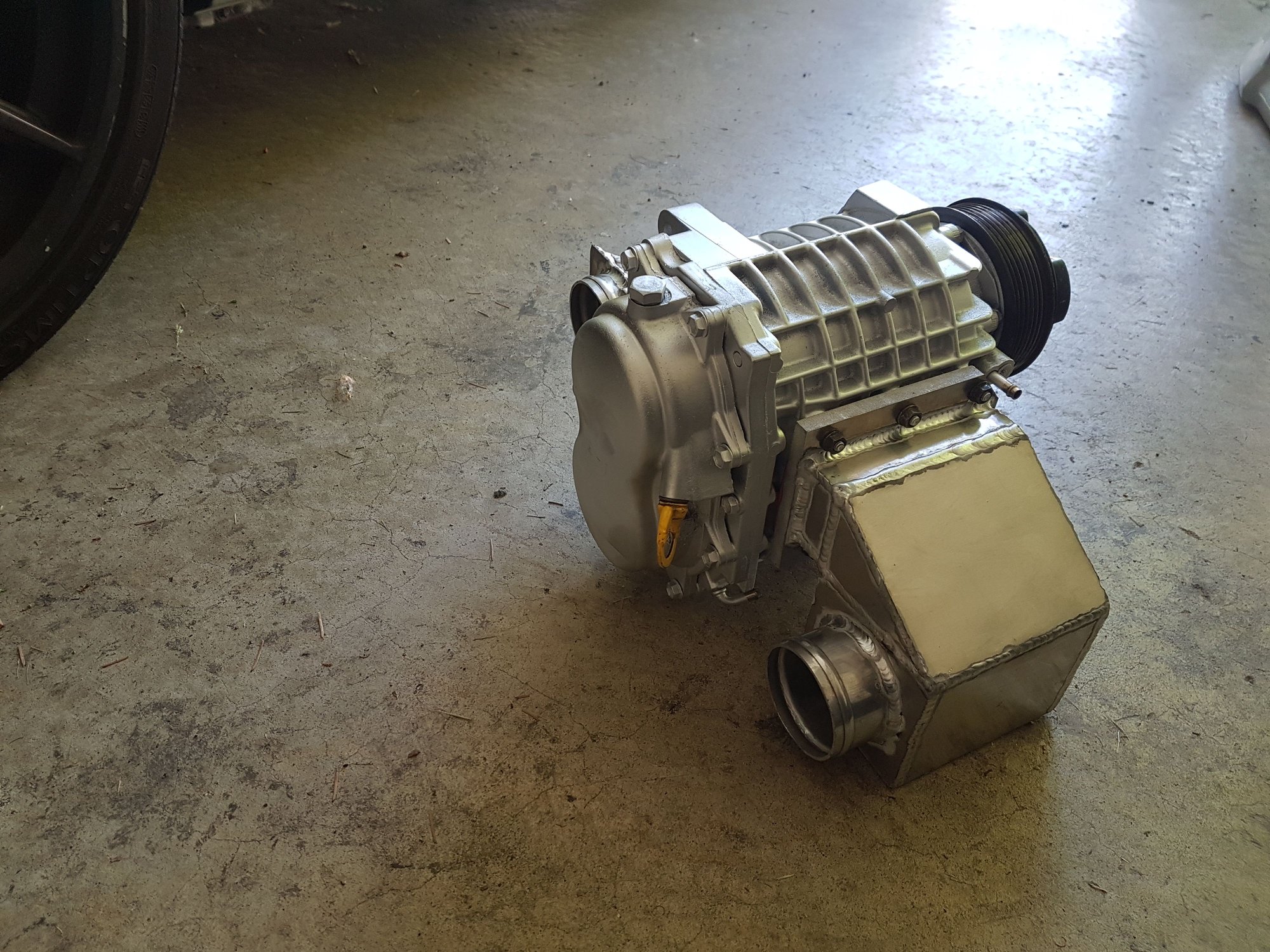 I'm running a bit less than 2:1 drive pulley to supercharger pulley ratio, which cranks around double the rpm of engine. So at 6000rpm I'll be around 12000rpm on the charger. ...we're not supposed to really exceed 10-12k on this charger because the rotor blade coating can melt.