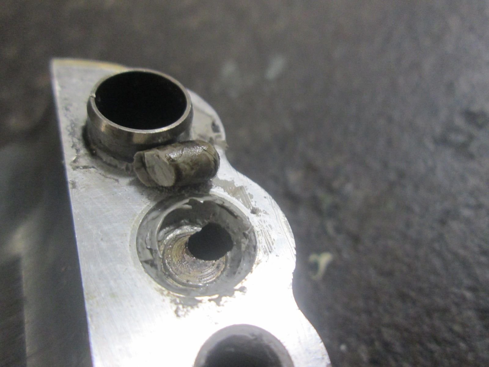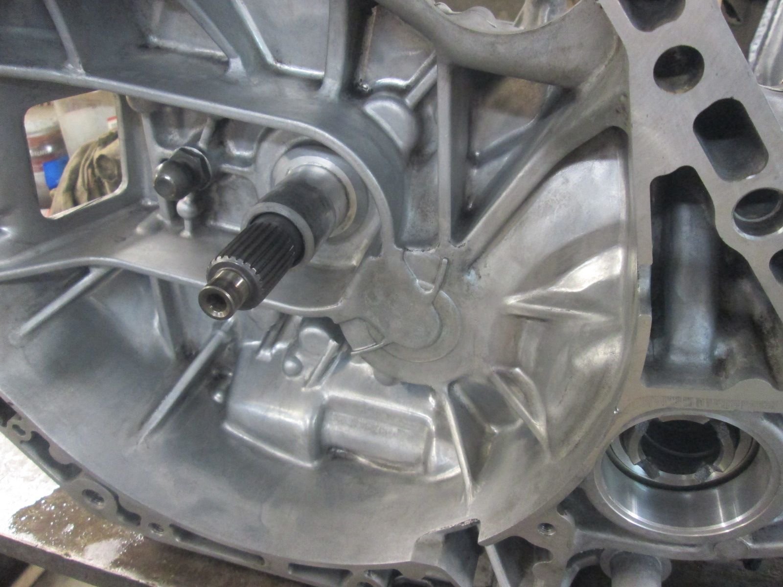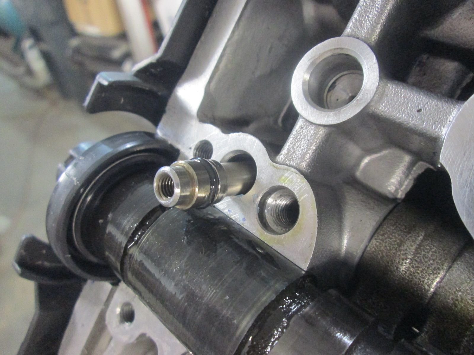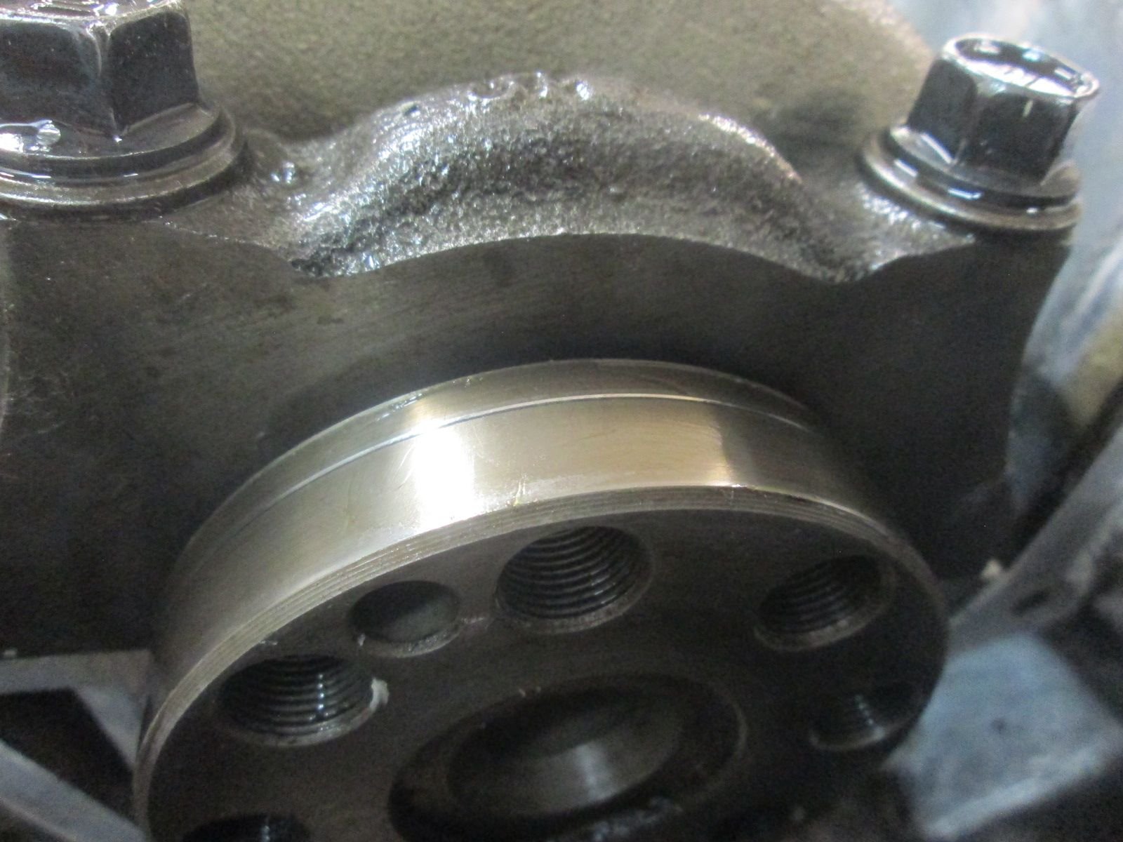 I was all set but I soon ran into a snag with this housings back cover. There is a pressed bushing in it that the end of main shaft rides in and I found that it had worn through the hardened surface coating of this bushing.