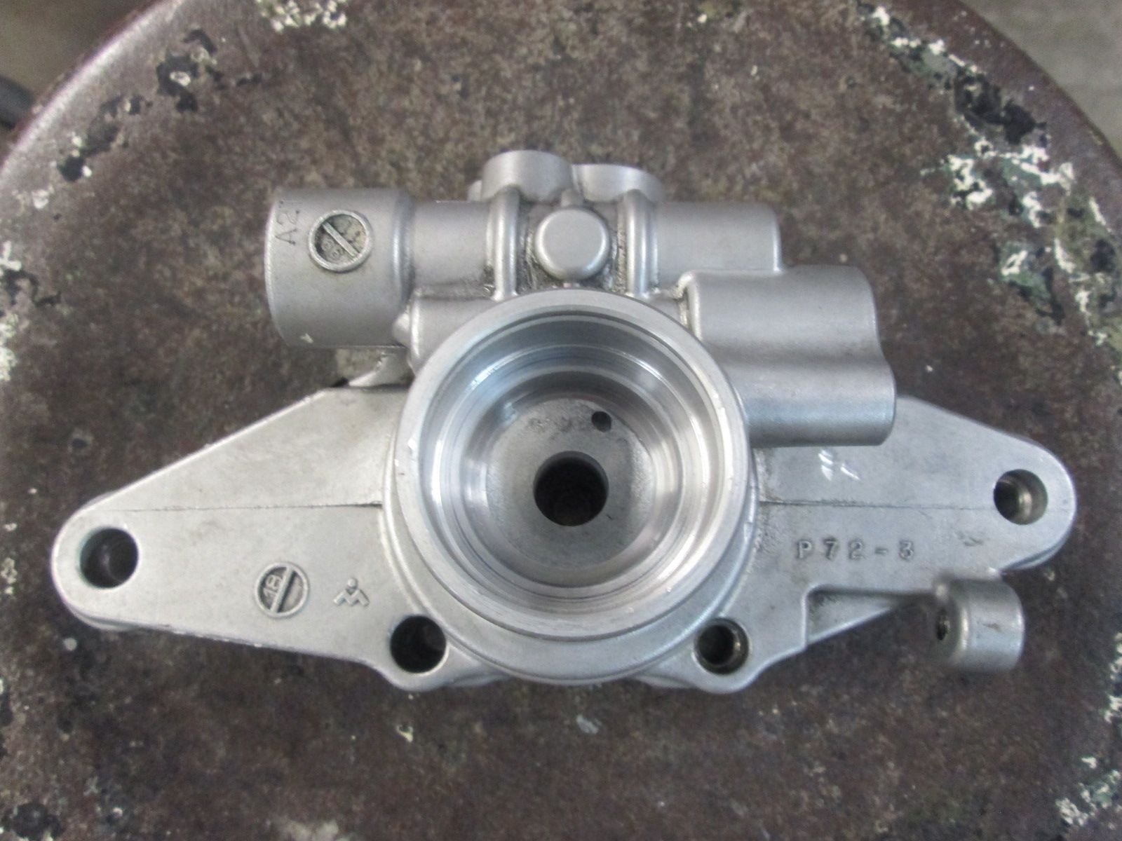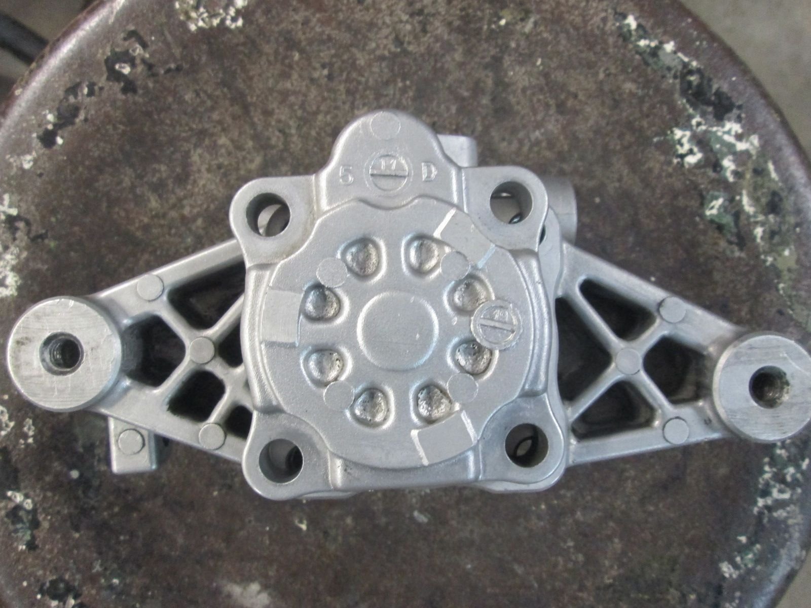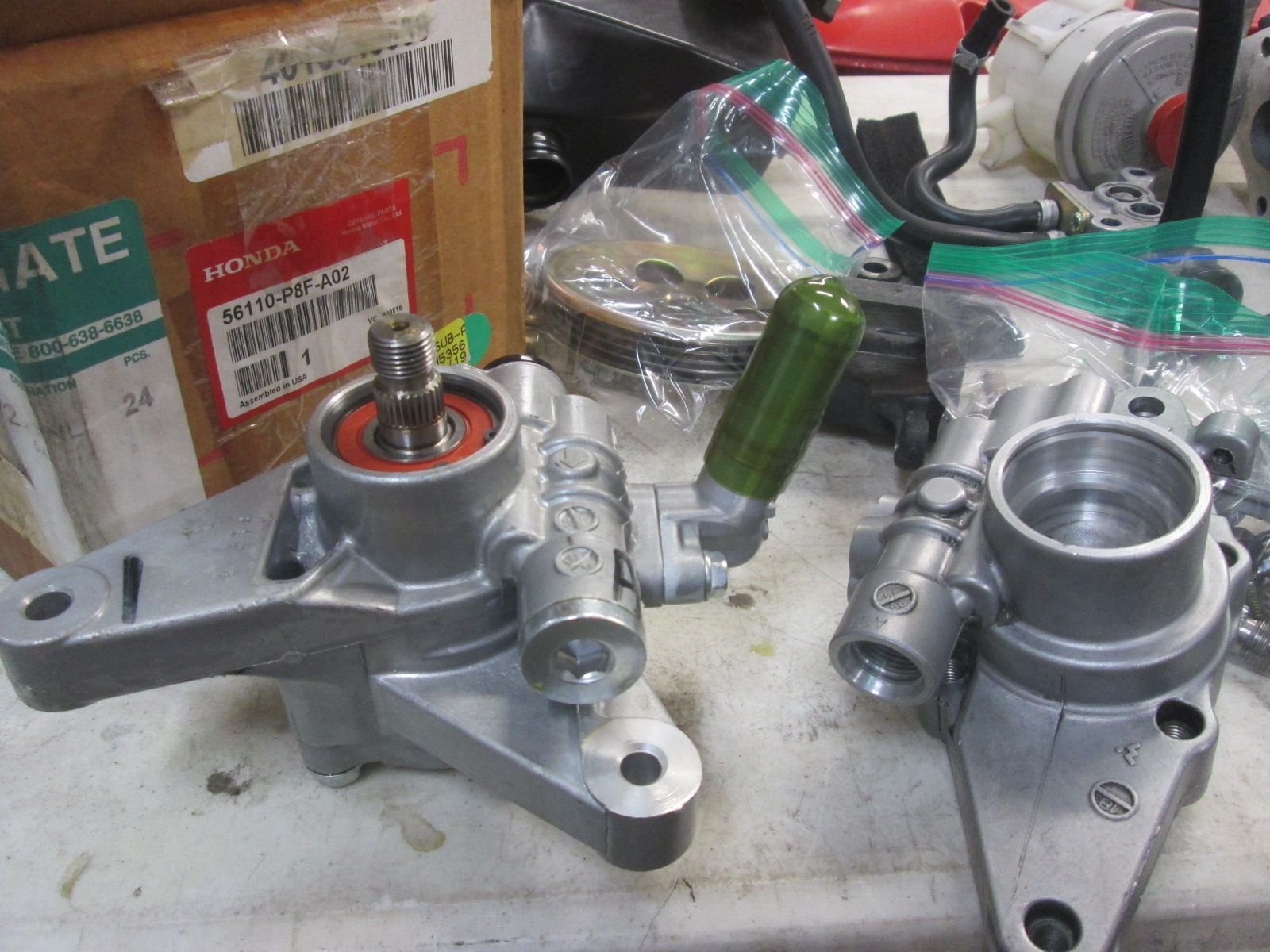 I was stuck. I could put it back together but how long was that really going to last with the bushing worn through like that? I was hoping to find an NOS EM1 pump but nothing ever came up. As I searched I did find this NOS pump for an 02-04 Odessey. I studied it and studied and other than housing configuration everything else looked identical. The seller was firm at 375. I could have a partial mystery rebuild from that shop for 300 bucks+core or I could take a shot and have a "new unit" in the end for 75 bucks more? I decided to roll the dice. Took delivery of it here and things were looking good!