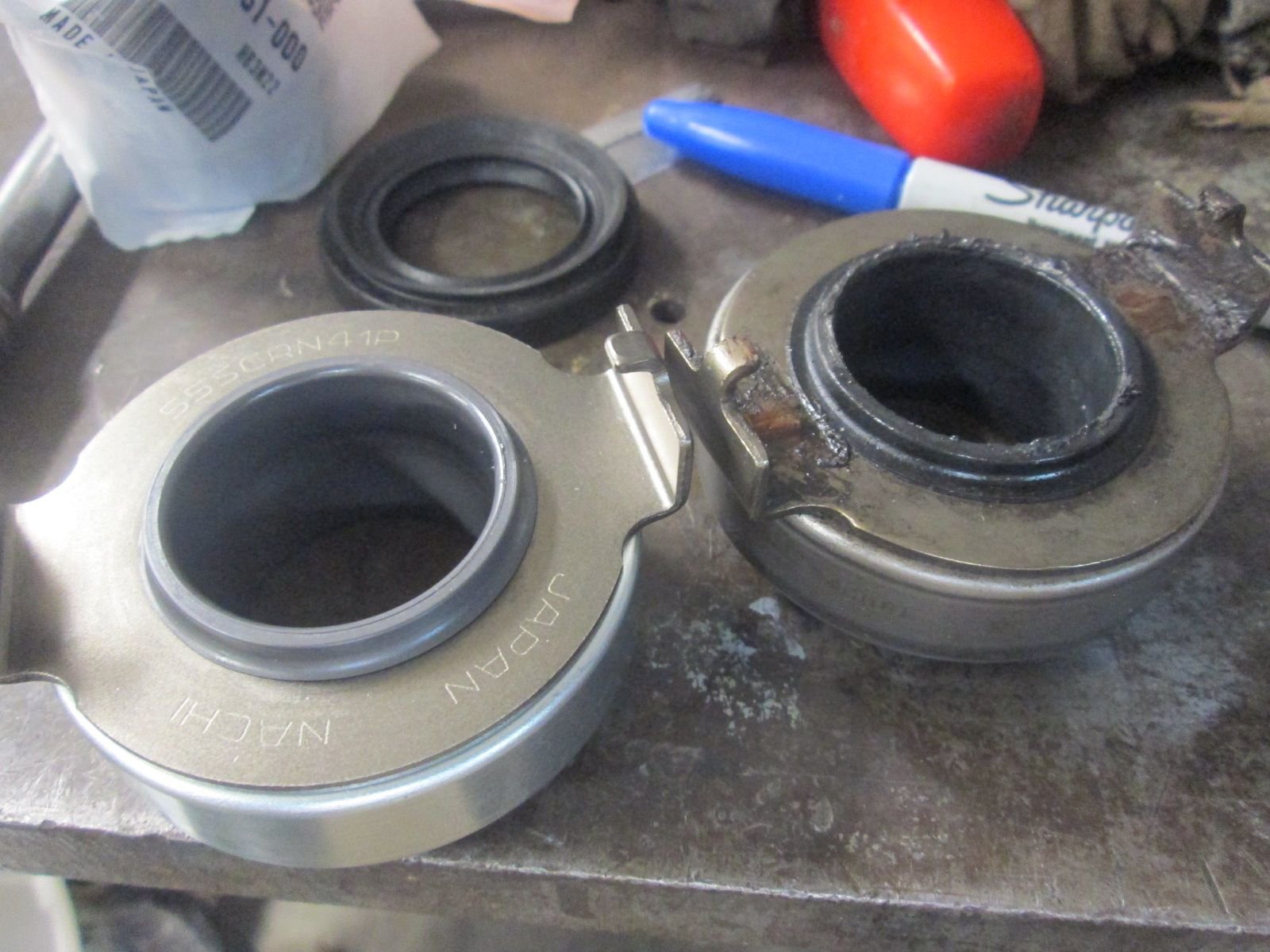 Not worn or old enough but am replacing the dealer installed generic T.O. bearing with a factory Nachi unit.