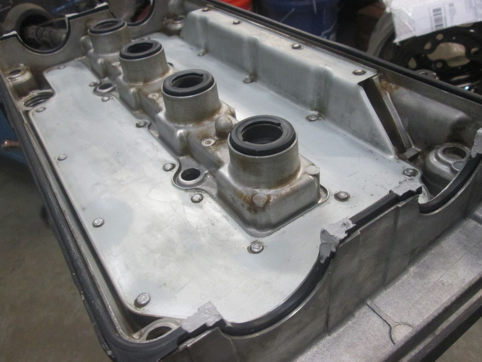 Getting my head around that problem ate up a couple of days but I was now finally comfortable enough with the final adjustment to close it up. Cleaned the valve cover up added the new seals and applied Honda bond to the 90 degree corners as recommended once again in that great assembly video.