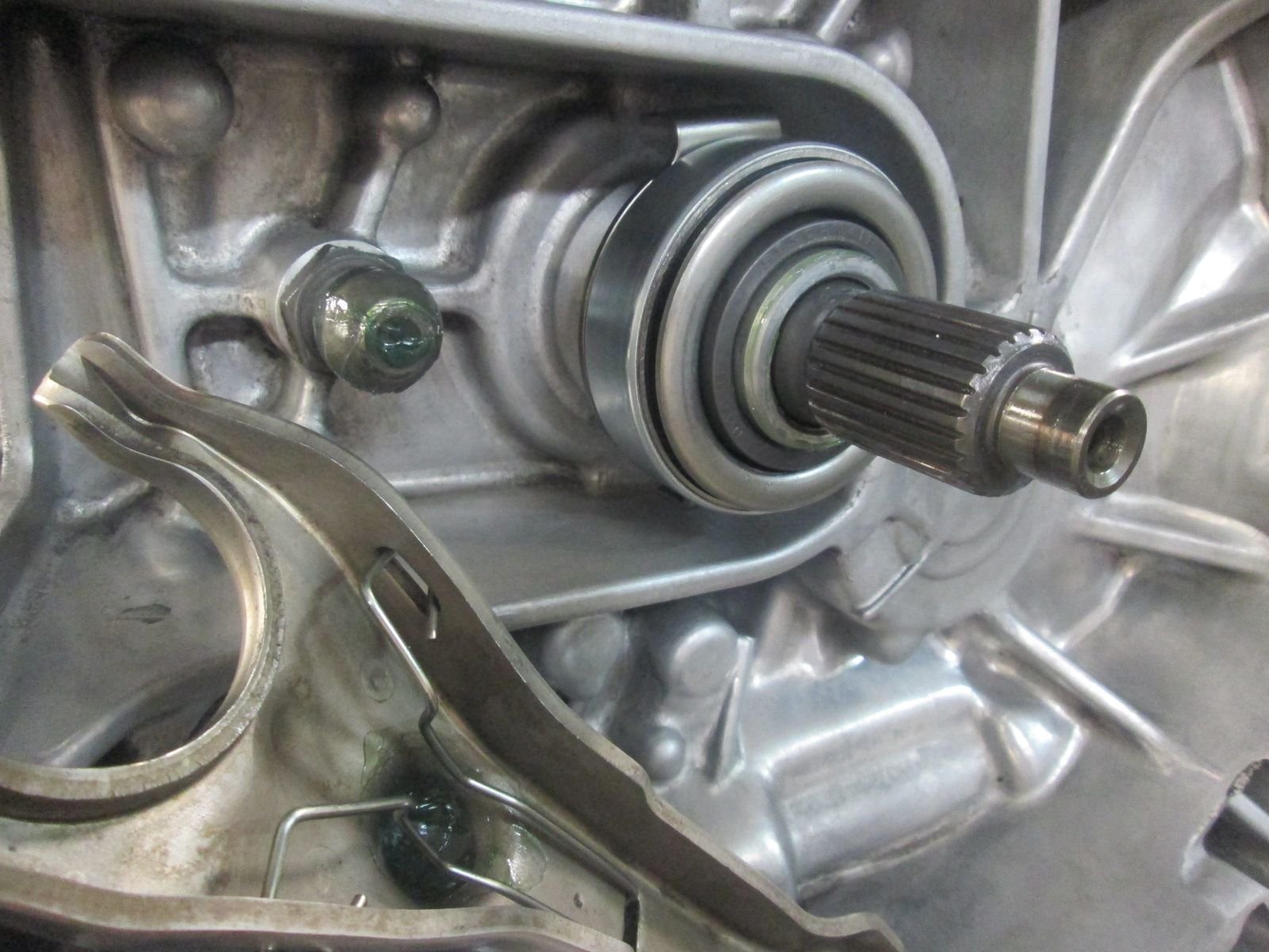 Release fork cleaned with pivot point packed with the urea grease. Operating sleeve also coated in it for the new T.O. bearing to run on.