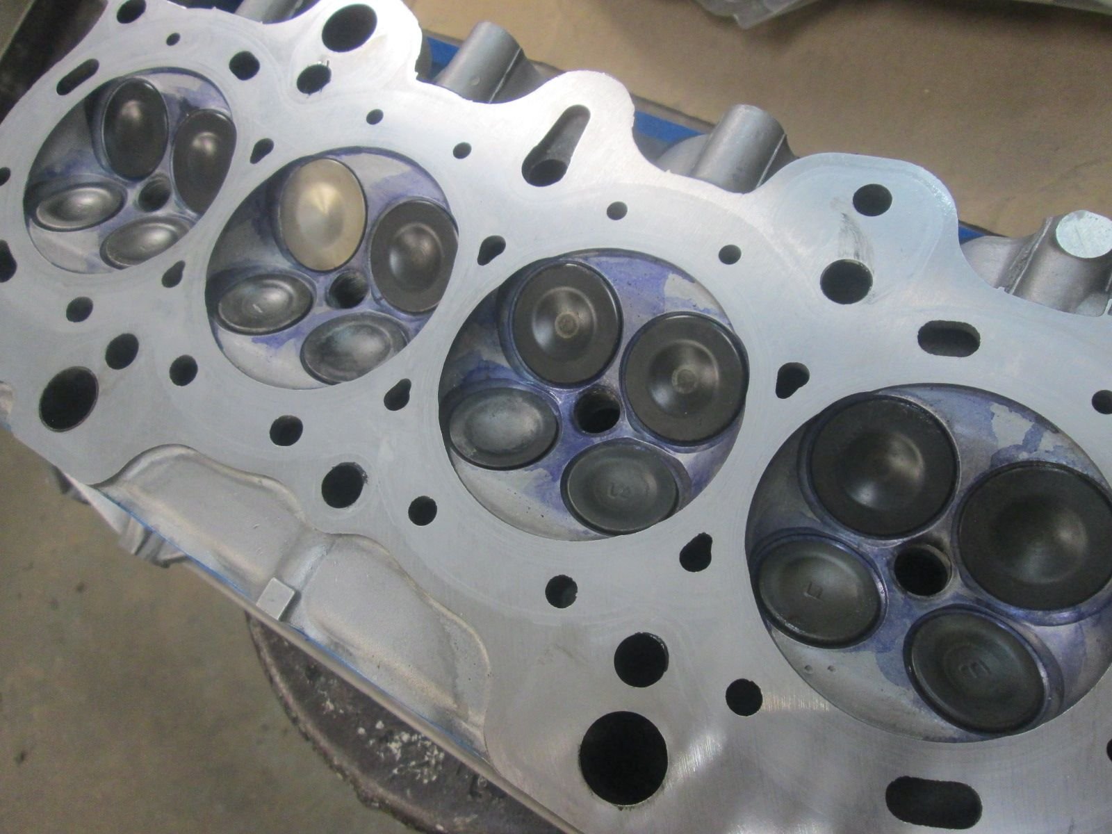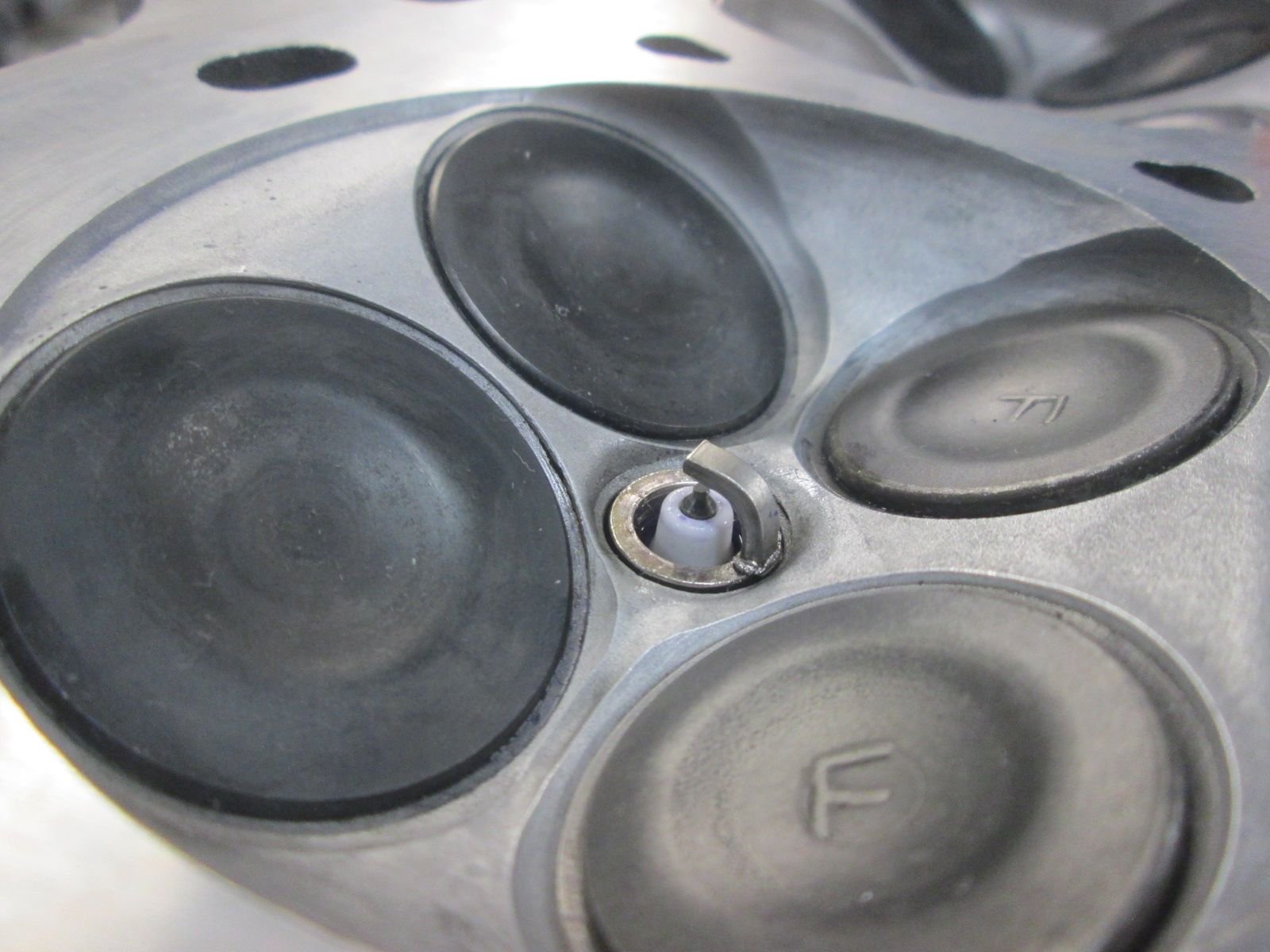 The head was disassembled, milled and given a valve job. It needed no new valves, seats or guides. So the pistons did not contact a valve. The silver intake valve is the one that was replaced in '19.