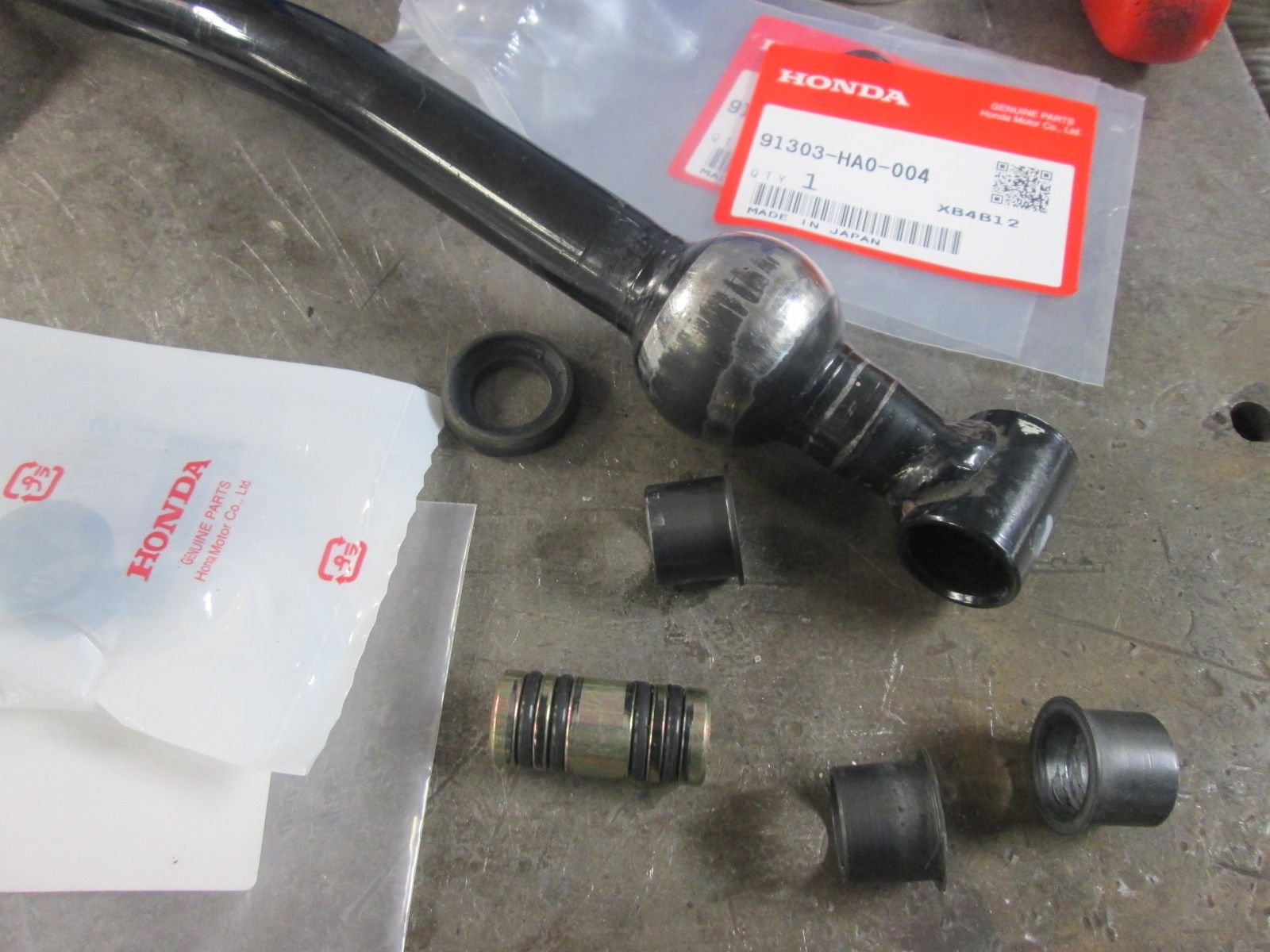 Once I got the pivot assembly apart I was shocked to find all the internal seals and bushings in great shape with no excessive wear or slop. The pivot boot had dried up a little but other than that it could have been reassembled as it was. I didn't do that as I had all the new parts on hand but just one more example of how great Honda engineering is.