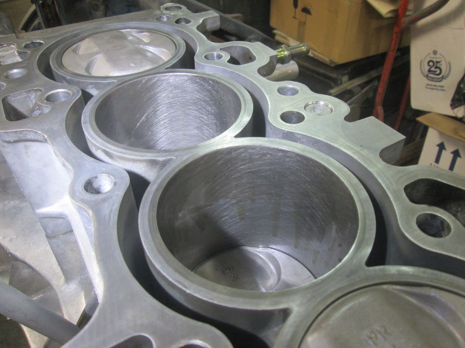 I was ready to have it bored over but it didn't need it. No significant tapering or barrel wear. No detectable wear ridge at the top. They said that walls were not polished and even retained some of the factory honing marks,