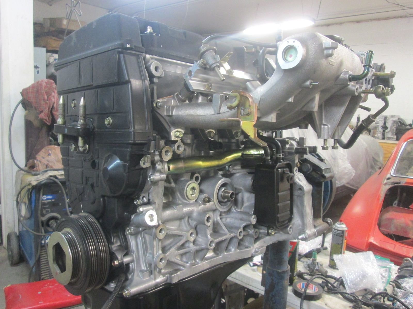Now that the technical aspects are complete other than setting the timing the more relaxing and straight forward part of bolting on components can begin.