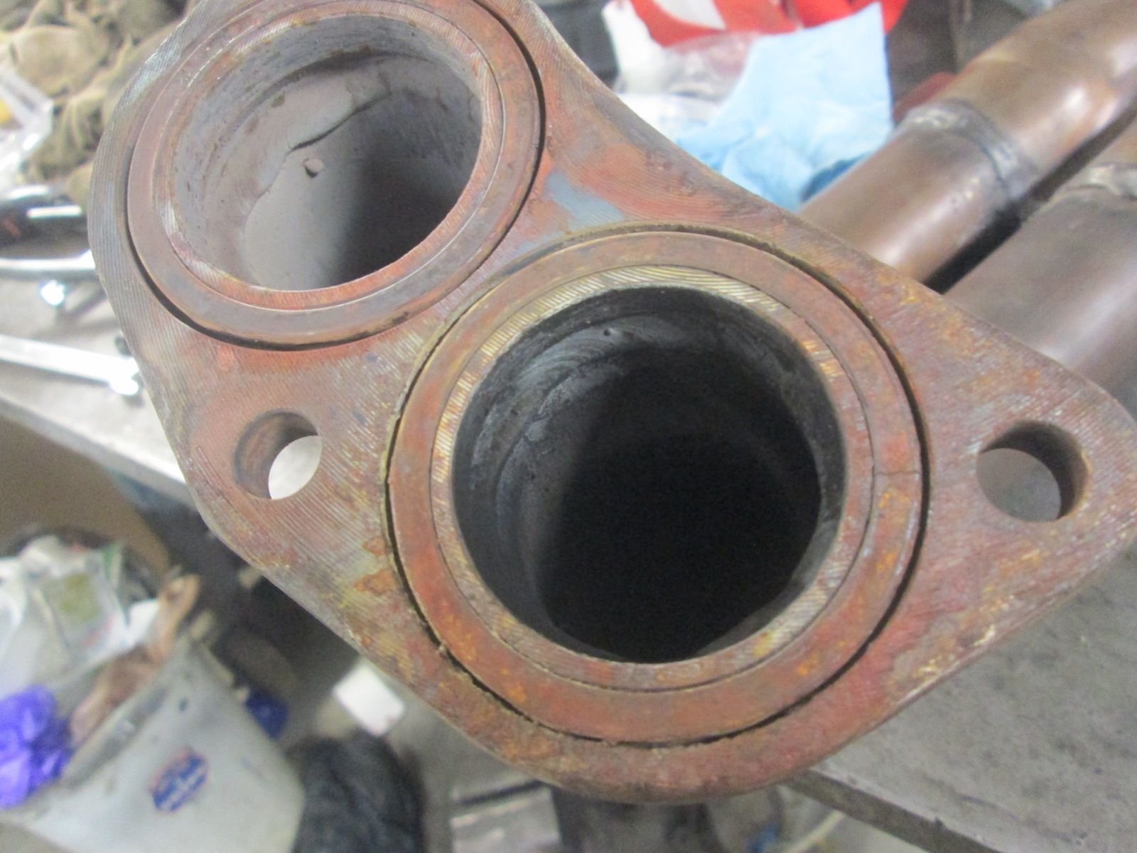 Onto prepping the exhaust manifold mating flanges for its reinstallation.