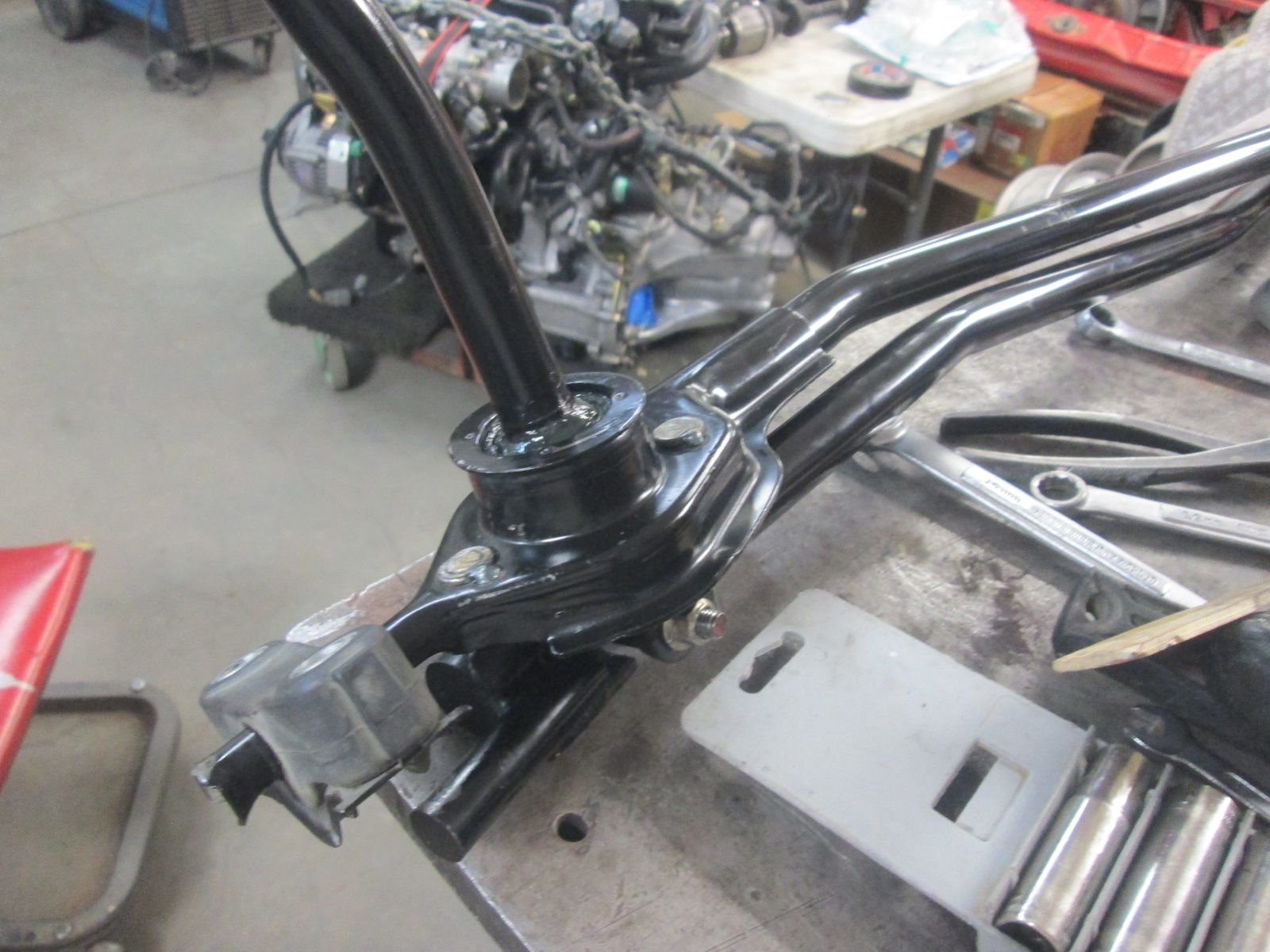 Pivot assembled and ready for re-installation into the base housing. BTW I also purchased a new rubber mounting base for the tail here and also the donut bushing for the front. Both are still in excellent shape so I'll keep them on hand until they need replacing.