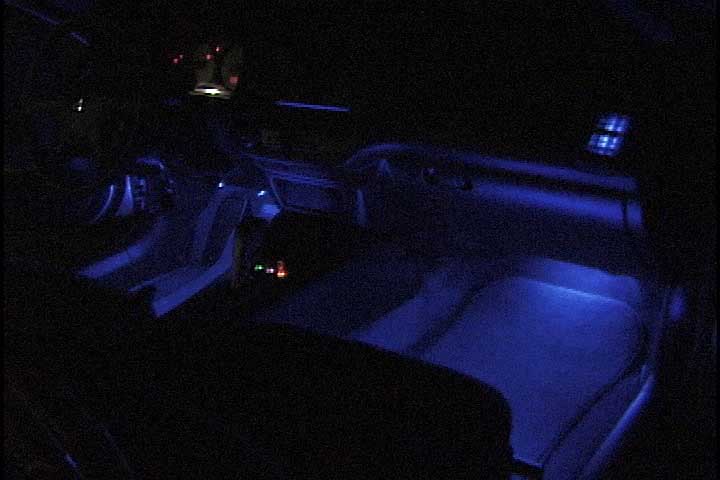 nothin turns heads more than neons and car lighting. i cant go anywhere with out ppl looking over with interest towards my car! ive got 2 15"ers under the front seats, one 20 inch right under the back seat, two 9 inchers mounted on either side of where the seats fold down in the back, one lava on the center of the back seat, hotwirez alonght the center console from the cup holders around to the end and back, hotwirez around the center dash outlineing the radio and ac controls and also along the dash gauge area. there is a led tracer mountd out of the ceiling in the back, in adition there are headlight strobe lights mounted in the ceiling on a strobe controler, two 6 inchers in the sides of my kicker amp, two huge leds that work as spotlights that highlight the cones of my subs in my trunk, a color fader in the underneith of the plexi-glass trunk floor ( the amp will go here soon, its my current project), tail light strobes for the police effect, apc 3-in-1 led strobe snake eyes, and apc seven color angel eye projector fog lights, and finally a strobe in my lower grill. and all this is with a music interface on custom wiring, switches, and fuse panels. i ahve much more to go, this is only the start!