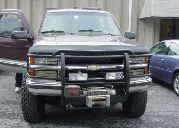He has a full limo tint, 6 inch lift, 35 inch tires, running bars, boston acoustic sound system, bazooka sub tube, and more stobes, sirens, and flashing lights than a fire truck.