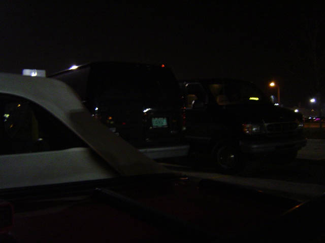 I bust out the digital camera. As I'm taking pictures, 2 hot chicks drive by in a grand am and say "nice cars". We stop them and tell them they have to drive by and look in the back of the conspiracy vans when they open them and tell us what they see. lol. The girls do, but the evil people are cautious not to open the back doors when someone could see.