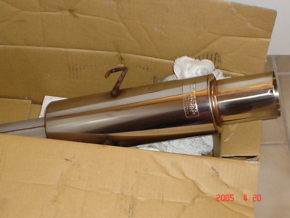 This was on my car for about a little over a year, Jan 2004 to March 05. Still in wonderful condition, pics are attached. This is just the muffler, not the cat-back piping. It needed a custom piping and it was welded on, (more pics can be taken).