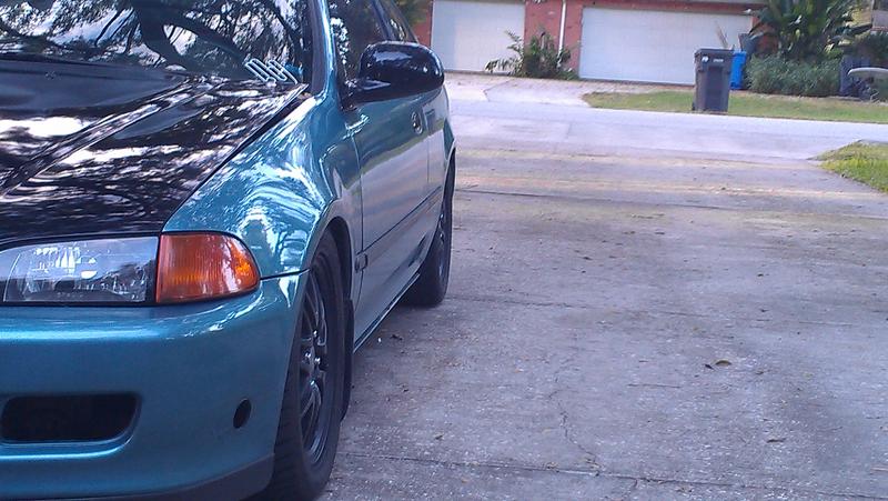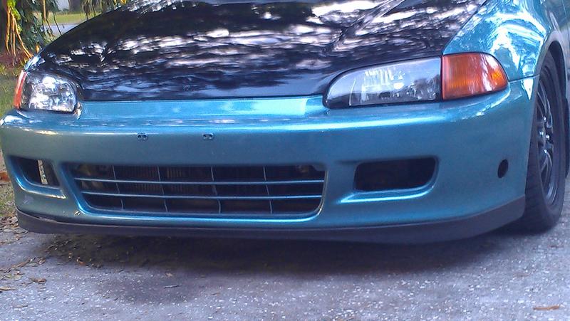 Mods: B16a, T3/T4 .50 trim turbo, intercooler, 2.5 piping (intake side), 550 RC injectors, AEM fuel rail, AEM fuel pressure regulator, B&M fuel gauge, Walbro 255 fuel pump, Blackworks racing 92-95 dual core radiator, Avid front traction bar, XS power turbo manifold, Skunk2 intake manifold (not pictured), Skunk2 70mm throttle body (not pictured), Optima battery relocated to the trunk (not pictured), JDM front bumper, 92-95 lip custom fabbed to fit, Mugen valve cover, Mugen shift ****, 99 Prelude front seats, Back seats reupholstered to match, boost gauge, p28 ecu chipped with krome setup, cheap-o coilovers, Vent visors, XXR 15x7 Flat black 522 rims, Blackworks racing LCA's, Beaks under brace, ASR subframe brace, 3" manderal bent exhaust, Megan 3" in 3" out muffler, Flat blacked all piping, Trunk lip off of an 87 Prelude, Rear disc brake conversion. I thinks thats all of it. There was a lot of custom fab work for the radiator to fit too.