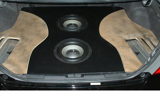 Need a pic but it's done. I wanted to match the design of the TDX subs but the grey was too light, so I wrapped the sides in black suede. Next I need to get fabric paint and paint the side pieces of the trunk liner. Amps need to be lifted up a little bit. Sounds great, good fit, perfect tolerences, no rattle.