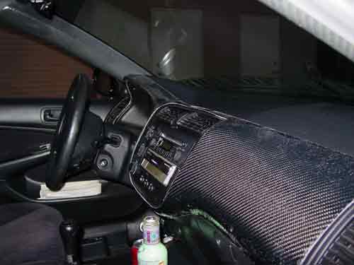 I thought the pillars were stock!!! They dont look like CF, but I guess thats what you mean when CF goes bad. As far as the dash, thats hella tite! Only thing is, it looks weird if the vents and center console are stock cuz they stand out.