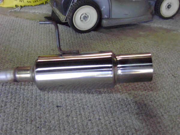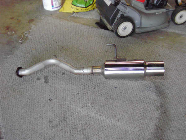 the mufflar new i belive was 120 but it looks brand new and you are getting everything for a third of the price. Not a ricey exhaust it is a consistant deep tone, not one to get you pulled over with either.