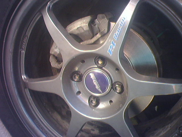 he helped me install new hawk pads and Brembo blanks on my car today... they look so shinny and bling bling...