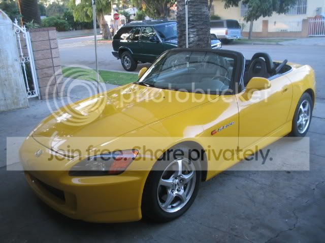 I have a salvaged 2001 spa yellow Honda S2000 that is up for sale or maybe trade. It was involved in a minor front/passenger side collision; however it was repaired by a professional shop. The car is bone stock besides the upgraded 04 front bumper, 04 convertable glass top, fluidyne radiator, and a pair of alpine type-s speakers. The vehicle doesn't have any airbags, but includes the plastic covers for them. There are also a couple of a/c lines missing. Despite that, overall the car is in great condition and runs like a champ. I haven't had a problem since I've owned her. All the fluids were recently flushed out and changed. I recently took a couple of new pics for those who were interested. As you can see the body is in excellent shape. As of right now I'm only looking for a WRX. Feel free to contact me if you have any questions or want to check out the car.