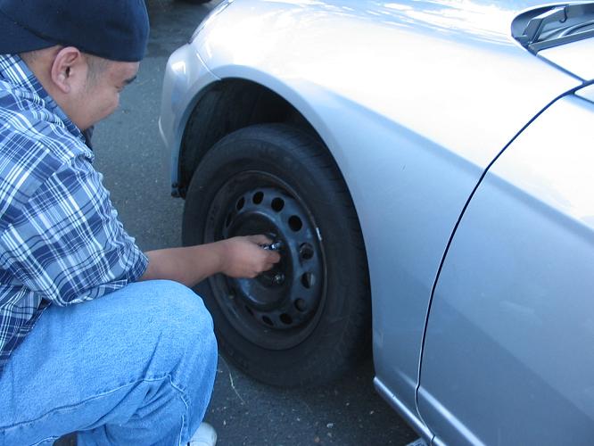 yeah we were on our way to irev. when to jason's house to take a leak but walter got own3d. his tie rod broke out and he almost crashed. spent half the day having a tech day instead of being at irev.... pics coming up...tapes n nails to fix it. hahahhahahahha