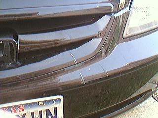 yup...first off i was at my friend jennas and as we were leaving we were both baking out of the drivway, i was near the bottom and BAM she punched it and slamed into my front bumper....it put like 4 decent sized scracthes and f0cked up the grill, and bent the hood out of whack a lil.........second insidence happend the very next day....i was at my dads and i parked in the street...well i was upstair and my pager went off so i ran out to my car and what do i see?? my mirror laying in the road so im like great...i walk closer and my ENTIRE DOOR is one giant dent...well this 16 year old chick was driving her dads brand new volvo and nailed me she was crying tlakin to her dad on the phone...well ne way we exchanged ensurance...and im gunna go get estimates somtime in a few days...btw ill have some pix up soon