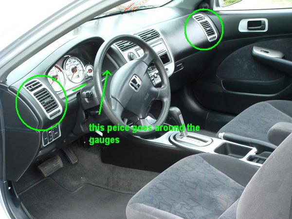 - various interior trim peices, i painted mine red (same as exterior) driver and passenger side vents, and the peice that goes around the gauges