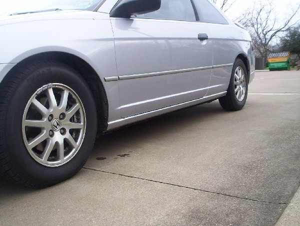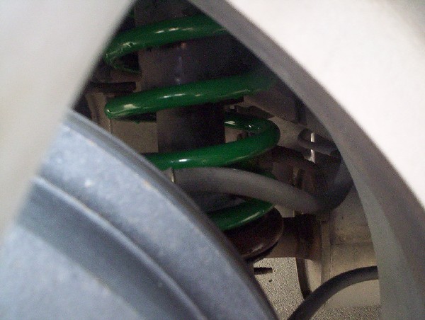 well stock i had a good 4-5 inch gap. Now its down to 2. i need to take more pics i dont like the ones i have right now. But the teins arent really supposed to drop that much. Just a shocker when the car comes off the lift and its lower i guess.