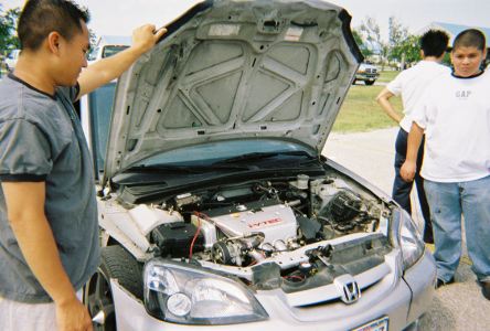 I still give him hella props on his swap.. But I dont know about having my car the way his was.. I mean a cracked bumper, missing fender, I mean for christ's sake the car cant be more than 2 yrs old and its already pretty beat up.. Thats the only reason I am looking at Turbo rather than swap...I think the install would be alot cleaner...
