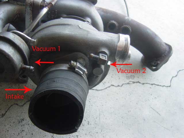and no...A is pointing to that huge hole....vaccuum 2 is pointing to that little nippled valve coming out from the turbo..