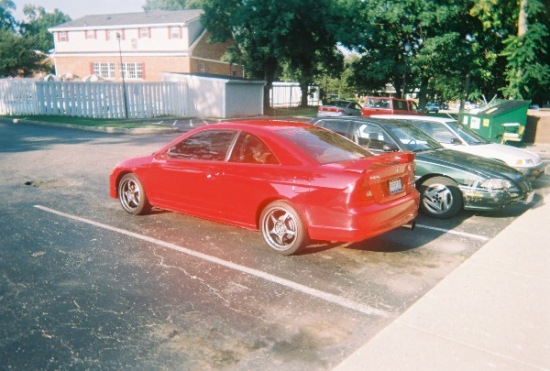 Well, after being requested to make a post updating all about my car, here it is. The car is back temporarily after the March wreck. The car is not in the condition that i had hoped. The color of the paint on the damaged protion of the car is crap, so i didnt have to pay the guy for doing it. Im just going to take it to a better place that i should have taken it to the first time. The car is overheating major, like it doesnt go more than 10 minutes before it hit the top of the guage. All the while its overheating radiator fluid is spewing everywhere, but that is prolly bc there is no overflow tank on there right now. The car also has a major alignment problem, tried to get it aligned and came to find out that the frame needs to be pulled froward like an inch, so thats a bitch right there. that is the first problem that is going to be fixed. I talked to my dad tonight and he was like u got to get it fixed, it has to be drivable. well that might mean one thing, rebuild. so if thats the case, ill let the process be left up to ur imagination on what is going to be done, those of u who already know, well u know. so dont mind the shitty pictures that i have given here, for i really dont like showing off my nasty, and dirty car.