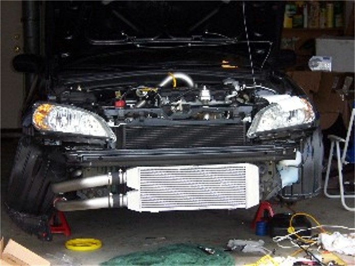 Does it pull good without the tune? Fun stuff, intercooler and everything looks awsome bro, get some pics up with your bumper on.