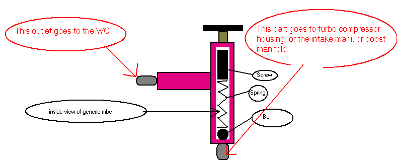 The inlet opposite side of the crew head is the part that goes to the intake mani. The outlet in the middle of the boost controller goes to the wastegate. The mbc that i made looks just like that one you have in your link.
