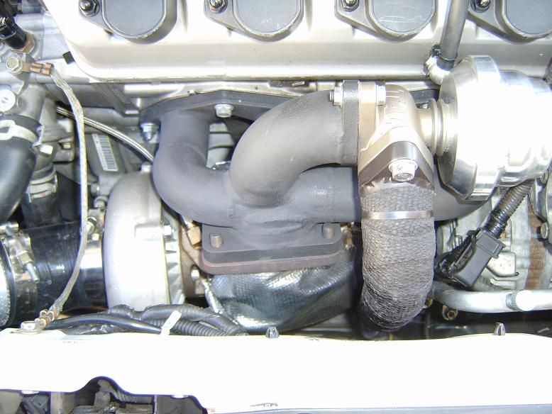 Ok here are some pics. I still have to mess with the angle of the center pipe since it hangs a bit low. And I need the put the part of the v-band where the bolt is to the top instead of the bottom. Ill have a drive by vid as soon as I can turn the boost down a bit. I will say that its definatly not as loud as like an N1 muffler but its still more then I want.