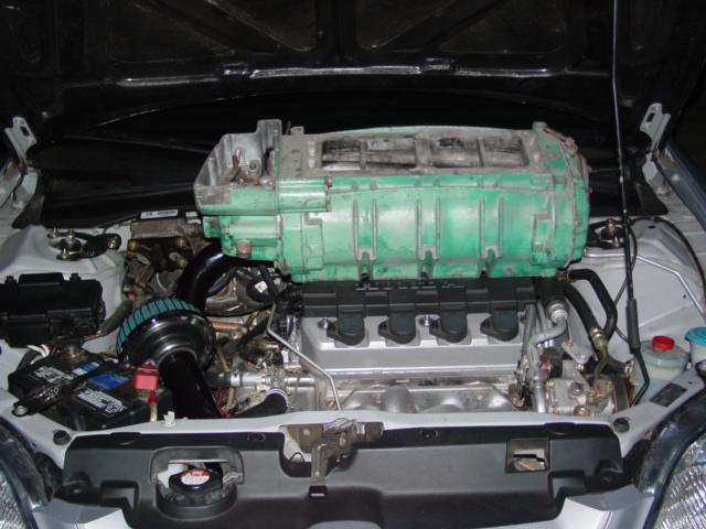 and he is putting that blower on his old ford station wagon. The blower is even the same color as the car!!!