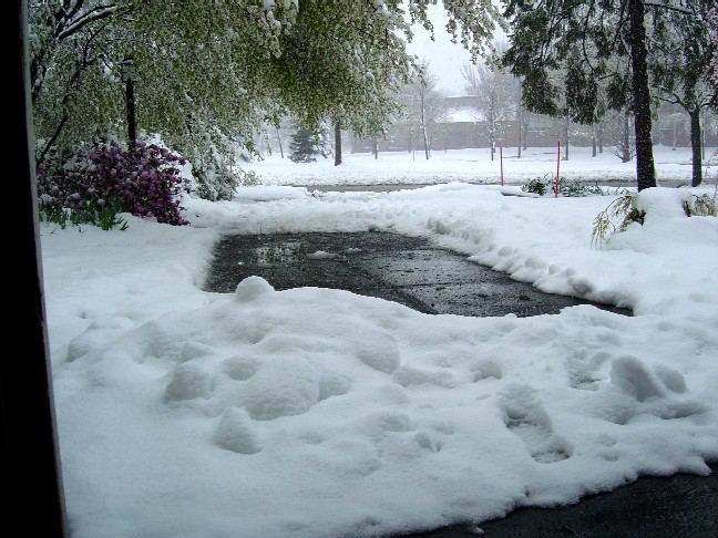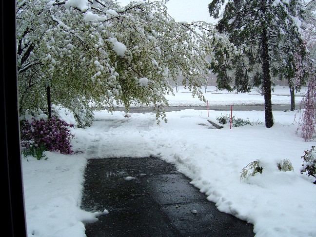 its not supposed to be ****in like this. luckily my car has been in the garage all day. see that tree hanging over my drive, that used to be standing up dtraight, but all ther snow made it sag and basically block our drive. bastages.