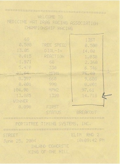 My 1/4 time before tuning was 14.718 with a 1 second reaction time and rock hard street tires.