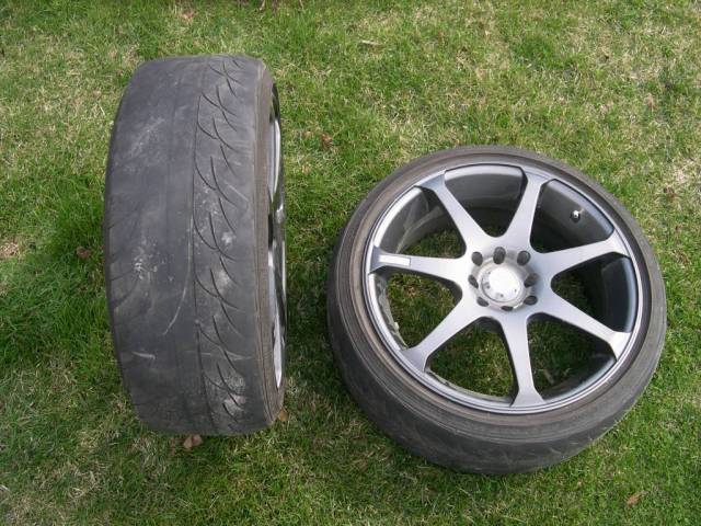 So are the enkei RPF1's. 15" with Kuhmo Ecsta Supra 712's, with about 80% tread left. ($1000) These rims are only 9.6lbs each!