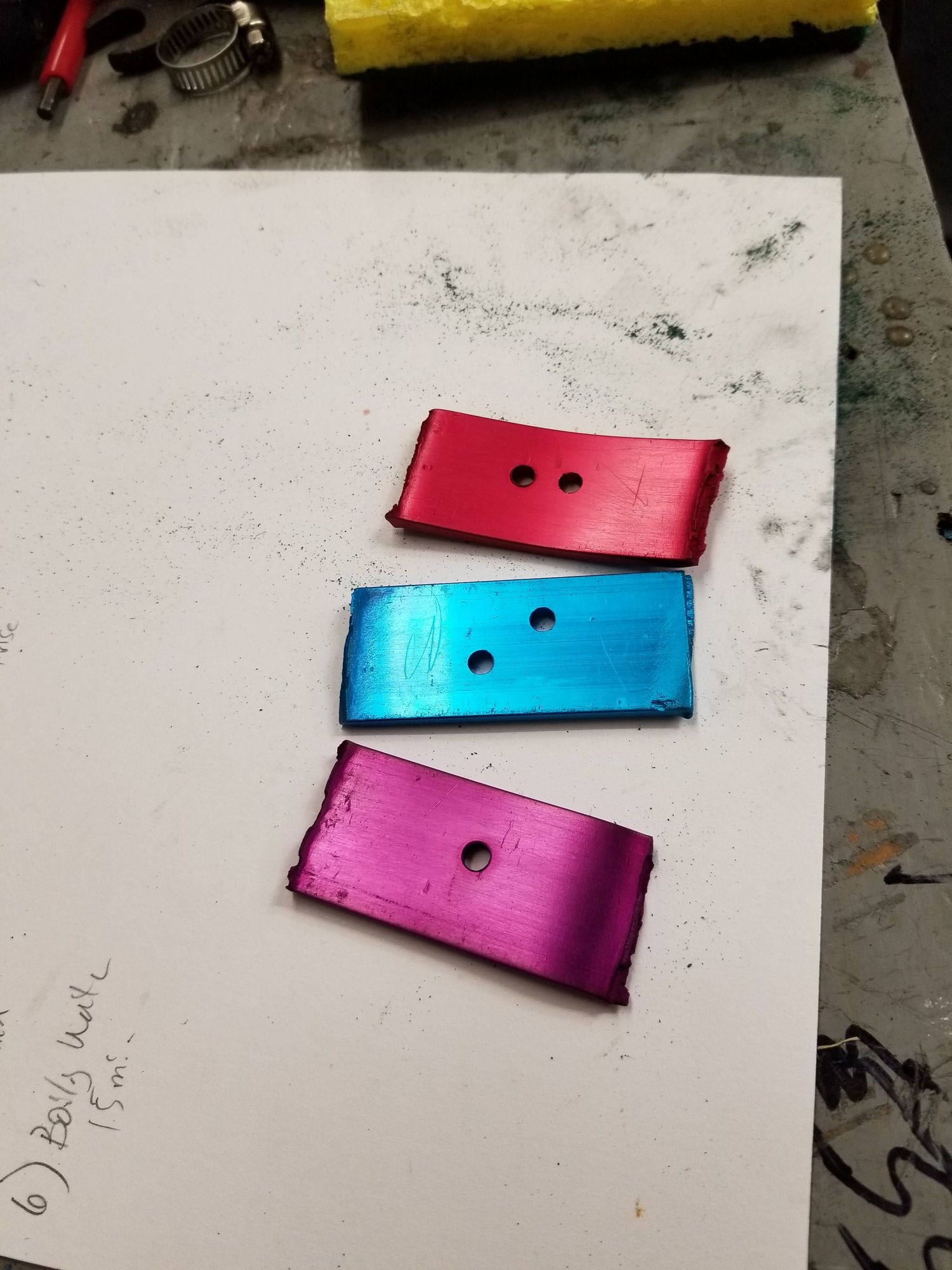 three different dyes using some scrap aluminum.
