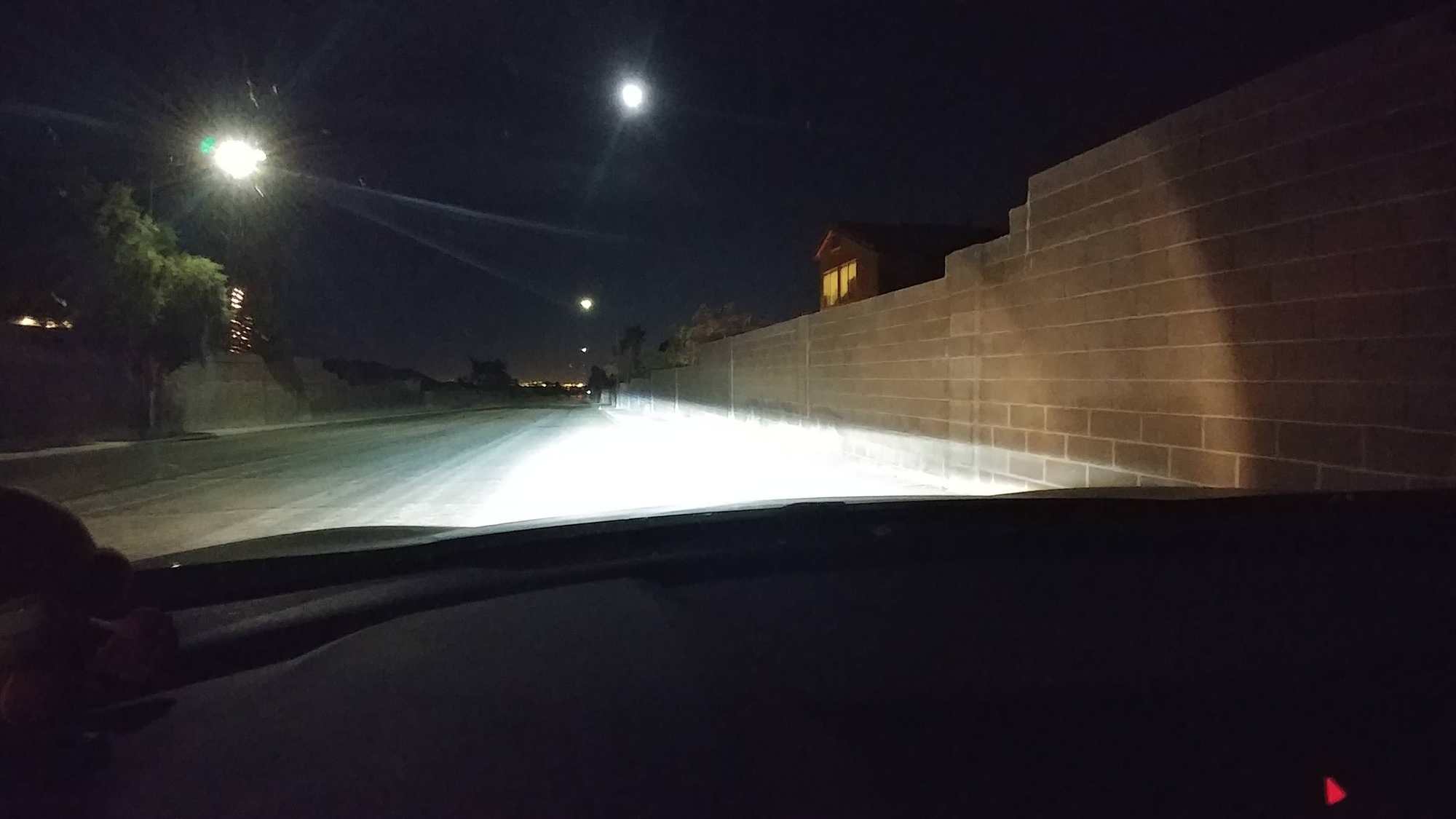 Not too shabby for OEM halogen projectors with PnP HIDs. "Glare" on the right side is from the fog lights.